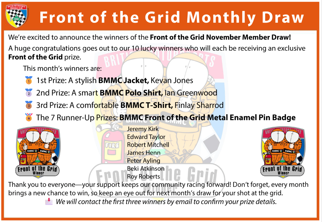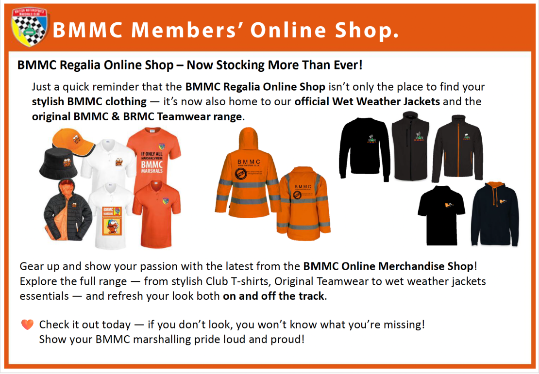 The Annual General Meeting (AGM) of the BMMC shall once again be held at the Motorsport UK Headquarters in Bicester on Sunday the 7th December 2025 commencing at 14.00. As stated by Chris there are a number of key positions within the Club that need to be filled. A big thanks to all the officials, who shall be standing down for the many hours spent in the evenings and weekends working on Club matters. The Club does not run itself, so if you are interested in helping, please make contact to discuss the role you are interested in. All members are invited to either attend in person or via ZOOM, if you could please let me now via email on nat.secretary@marshals.co.uk by Friday 21stNovember 2025 latest. Details of the agenda for the AGM shall be issued shortly.